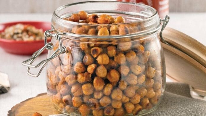 Salés et croquants, les pois chiches sont une meilleure option que les chips. On peut obtenir un mélange épicé très bon pour la santé. Ils renferment des fibres, des protéines qui ralentissent le transit et ont une propriété coupe-faim exceptionnelle.